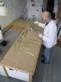 Upon finalizing the design, there was the prolonged process of ordering specialist glass from St. Juste in France for the clouds and Lamberts in Germany. Also a special order was made for Moon Gold, double thickness gold leaf from Italy.
